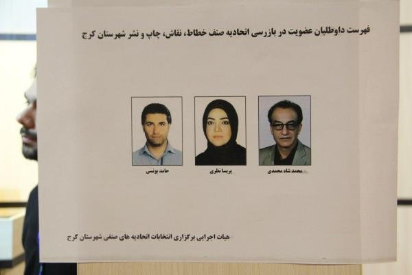 به استناد بند 10 ماده 15 آیین نامه اجرایی تبصره 3 ماده 22 قانون نظام صنفی (انتخابات هیئت مدیره و بازرس اتحادیه های صنفی) انتخابات اتحادیه صنف خطاط،نقاش،چاپ و نشر شهرستان کرج در روز يكشنبه مورخ ١٥ دى ماه ٩٨ برگزار شد.