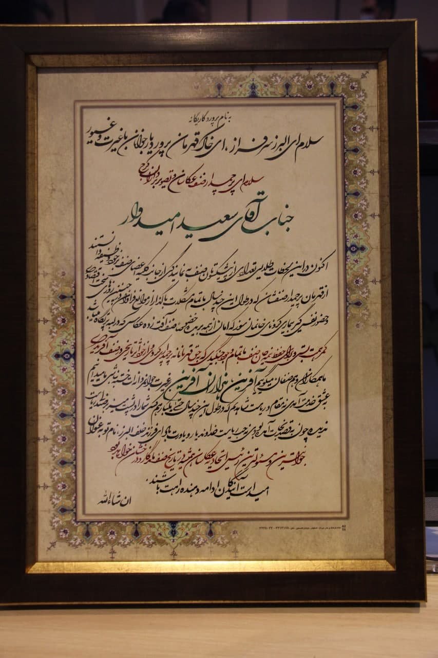 طی مراسمی که با تلاش و همت اعضای هیات مدیره اتحادیه صنفی عکاسان و فیلم برداران کرج برگزار شد ،از زحمات و تلاشهای آقای سعید امیدوار در مدت زمان حضورشان در این اتحادیه صنفی تقدیر شد .