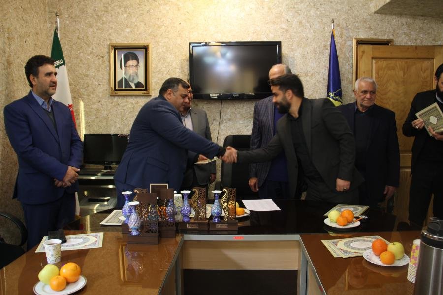 مراسم تقدیر و تجلیل از کاسبان امین اصناف و بازاریان ،فعالان اقتصادی و فرماندهان پایگاه بسیج اصناف در مورخه 1401/10/11 واقع در دفتر بسیج اتاق اصناف مرکز استان البرز با حضور حاج حسین مهری فرمانده بسیج اصناف و بازاریان و بهروز حصاری رییس اتاق اصناف